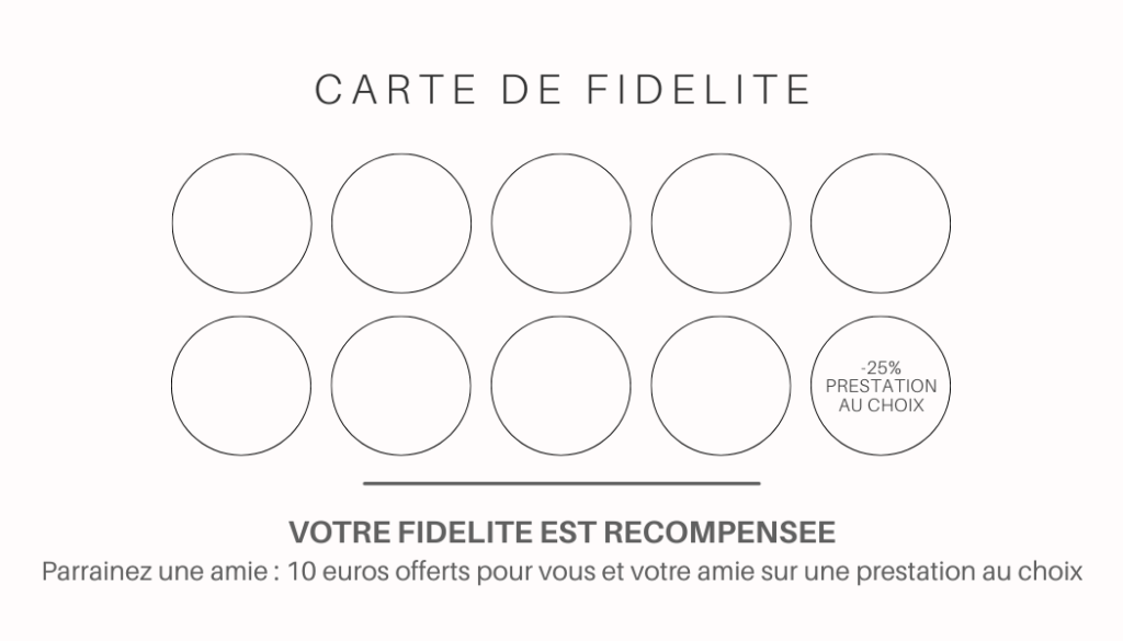 Je souhaite choyer mes clientes et rendre chaque soin encore plus agréable. Avec ma carte de fidélité :